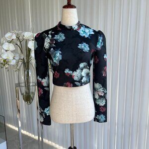 Style: Cropped long-sleeve top with feminine floral print