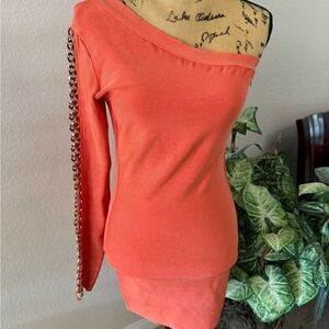 Marciano One-Sleeve Orange Dress with Gold Detail