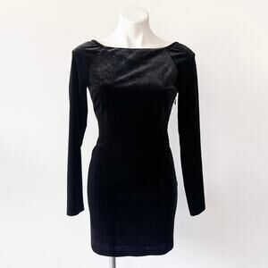 MARCIANO Velvet Corset Lace Up Bodycon Mini Dress Long Sleeve Black Women's S