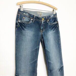 Marciano boot cut Jeans, lightly distressed denim with beautiful rhinestone and beading on both back pockets