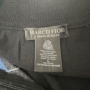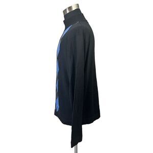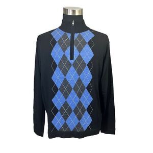 MARCO FIORI 100% Merino Wool Black Blue Argyle Pattern Knit Sweater sz L flawed