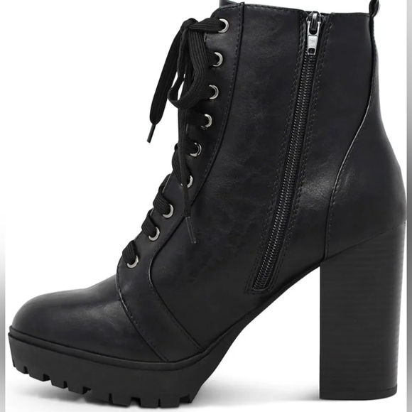 Only a few left! MARCO REPUBLIC Boston Black Combat Heel Boots. The boots shown in the photo are a size 6.5. However, multiple sizes are available.