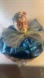 Elevate your living space with Vintage's exquisite blue and pink satin MARDI GRAS DOLL/PILLOW.