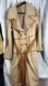 Double breasted Sand bonded faux suede reversible ankle length coat with faux leather extended length self tie belt, and contrast color faux leather trims.