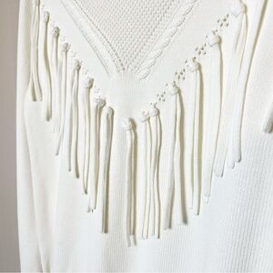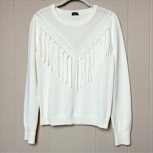MARELLA Ivory Fringe Pullover Sweater XS off-white cream tassels neutral jumper