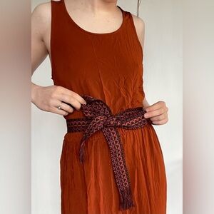 MARELLA Maxi Dress Burnt Orange Sleeveless Side Slit Belted Summer Sundress S