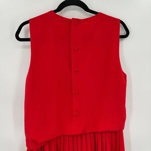 MARELLA Red Sleeveless Blouson Pleated Side Tie Button Back Midi Dress Size 8