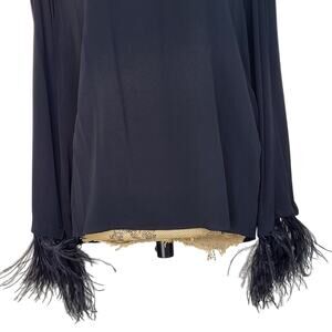 Designed with fringed ostrich feathers at the cuffs, Marella’s Rivista Top is crafted of silk crepe de chine with gathering at the neckline for shape. Dry clean only. Made with ostrich feathers