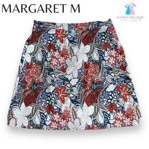 MARGARET M Deandra Blue and Orange Paisley A-Line Pull-on Skirt