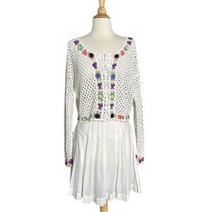MARGARET O’LEARY White Cotton Mini Skirt Embroidered Pleated Clean Girl Size Small