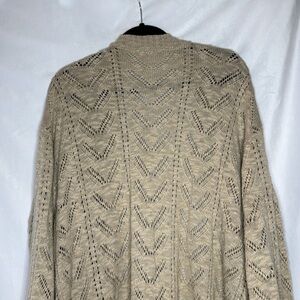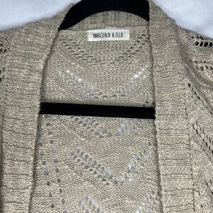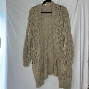 STYLE: MARGEAUX & ELLIE LONG CARDIGAN, Tan with eyelet cut outs, has pockets