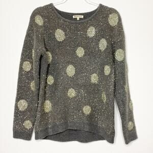 MARGEAUX & ELLIE Polka Dot Metallic Pullover Sweater Crewneck Gray Silver Size S