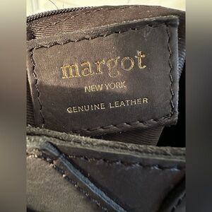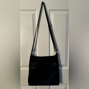 MARGOT Black Genuine Leather Chevron Hobo Bag Purse Adjustable Strap North/South