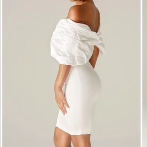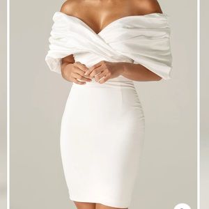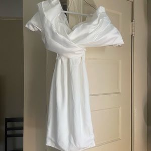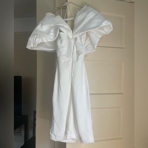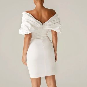MARIBEL CREPE RUFFLE SHOULDER DRESS