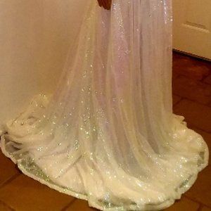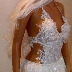 "MARIE" Custom White Sequin Backless Wedding Gown