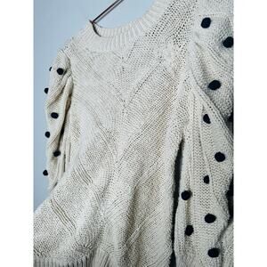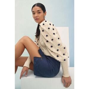 Marie Oliver Bridget Knit Bauble Detail Gathered Sleeves 100% Cotton Sweater in size small is a stylish and unique knitwear piece. Made from 100% cotton, this sweater offers both comfort and breathability. The standout features are the bauble details that adorn the sleeves, adding a textured and playful design element. The gathered sleeves give the sweater a voluminous and feminine silhouette, making it a great statement piece. This sweater is perfect for adding a touch of personality to casual or semi-dressy outfits, ideal for cooler weather.