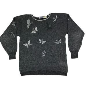 MARIEA KIM VTG Patchwork Sweater Women L Black/Silver Metallic Butterfly Retro Oversize 90's Y2K