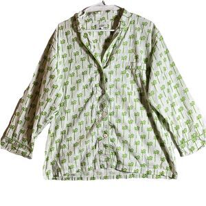 MARIGOT Pajama Top 100% Cotton Sz L Palm Tree Print Sleepwear