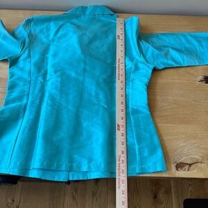 Womens size XS, 100% silk, button front, mother of pearl buttons, notch collar, 3/4 sleeves.