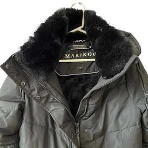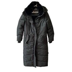 MARIKOO LONG PUFFER COAT S HOOD WARM ALL WEATHER CHIC BELOW KNEE FAUX FUR COMFY