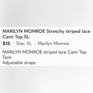 MARILYN MONROE Stretchy striped lace Cami Top XL