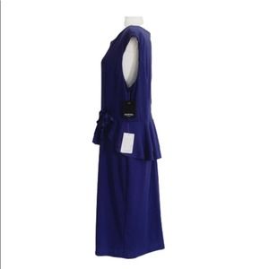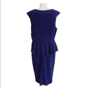 MARINA Cobalt Blue Purple Peplum Rose Sleeveless Cocktail Dress Size 16 NWT