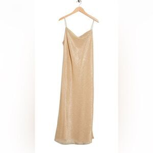 MARINA Cowl Neck Spaghetti Strap Metallic Maxi Gown Dress Size 6