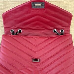 I have added an additional picture; see picture #9. This will allow you to compare it to a red handbag. I would say it is closer to Maroon in color. I hope this helps :)