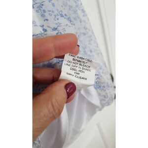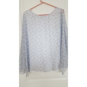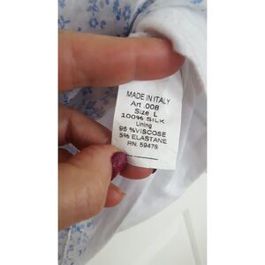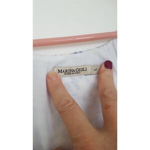 MARINA GIGLI Cream Blue Floral Print Silk Lace Short Sleeve Top Size Large