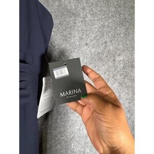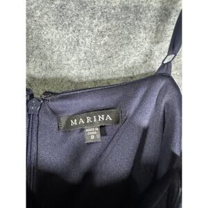 MARINA JUMPSUIT Women 8 SWEETHEART SLEEVELESS OVERLAY NAVY Formal Party NWT