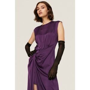 MARINA MOSCONE COLLECTIVE Purple Satin Shift Knot Sleeveless Dress Size 14