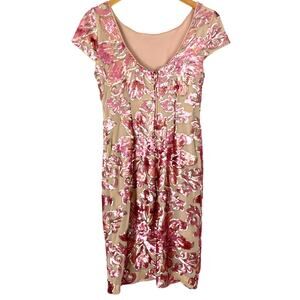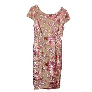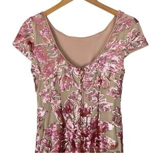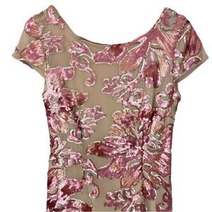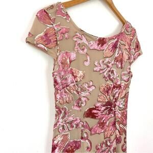MARINA Pink Sequin Dress Tan Nude Floral Rose Gold 8