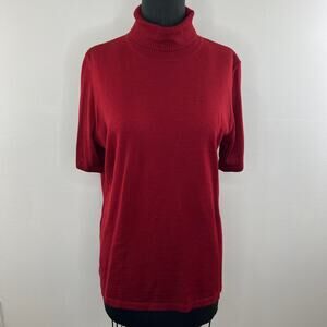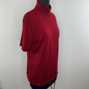 MARINA RINALDI 2-Piece Twin Set Red Wool Acrylic Turtleneck Sweater & Cardigan M