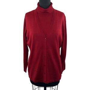 Marina Rinaldi 2-Piece Set Red Wool & Acrylic Turtleneck Sweater & Cardigan