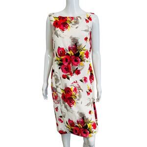 MARINA RINALDI Multicolor Printed Floral Sleeveless Knee Length Sheath Dress 14