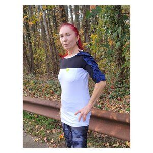 MARINA RINALDI Veggia Ruffle Color Block T-Shirt NWT Pocket