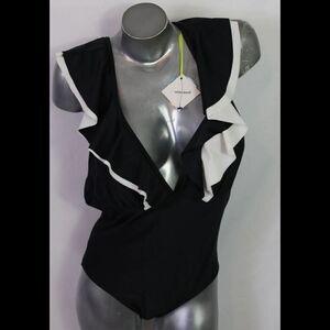 MARINA WEST DOUBLE RUFFLE CLASSIC SWIMSUIT SIZE XL NWT BLACK WHITE