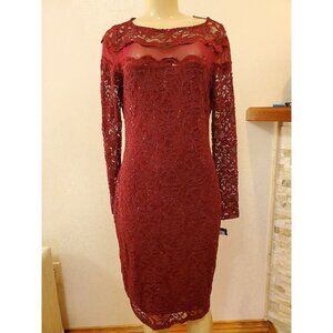 MARINA WOMEN'S BURGUNDY LACE DRESS SIZE 10 #168