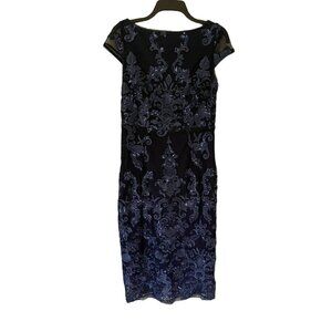 MARINA Women's Formal Cocktail Party Dress Blue Sequin Embroidered Knee Length 8