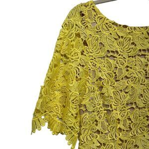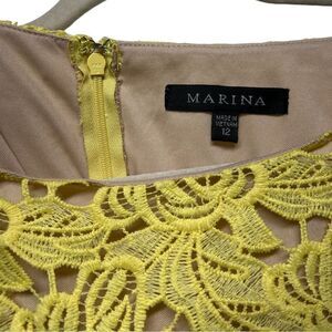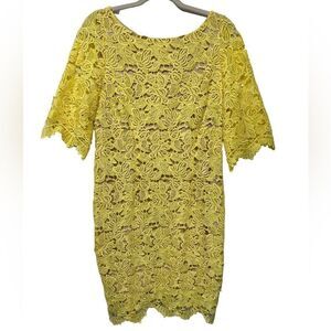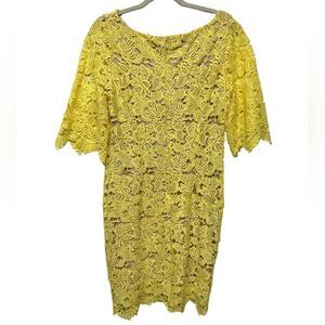 MARINA Yellow Lace Mini Sheath Dress Half Sleeve Casual Formal Cute Summer