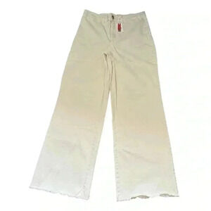 MARINE LAYER “Bridget” ivory denim pants wide leg high rise raw edge women’s 14