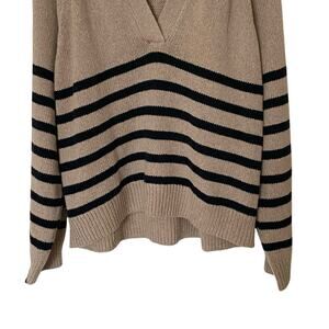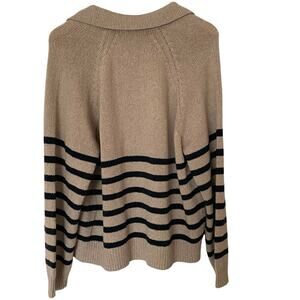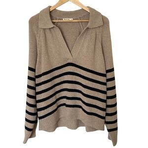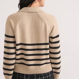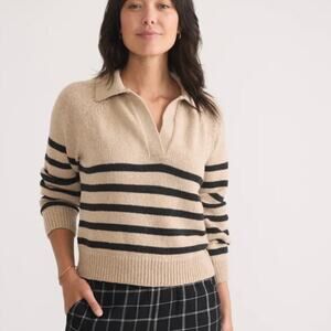 MARINE LAYER Claire Relaxed Knit Polo Sweater in Neutral Stripe, Size X-Large