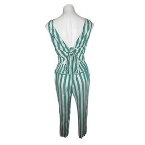 MARINE LAYER Eloise Jumpsuit in Green Lake/White Stripe Size Medium Women Tencel