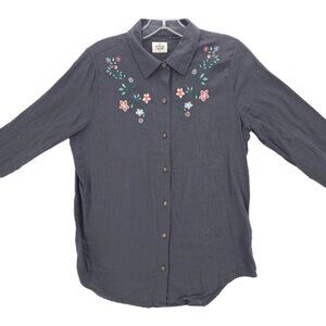 MARINE LAYER Gray Button Up Long Sleeve Shirt Floral Embroidered Size SMALL