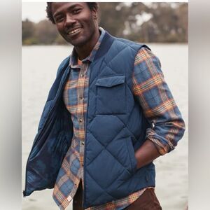 MARINE LAYER Light Weight Reversible Puffer Vest in Sky Captain NWT. Small