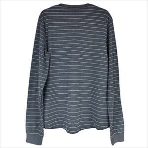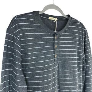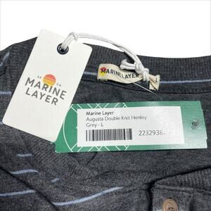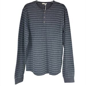 MARINE LAYER NWT Augusta Double Knit Henley Heather Gray/Light Blue Stripe Sz L