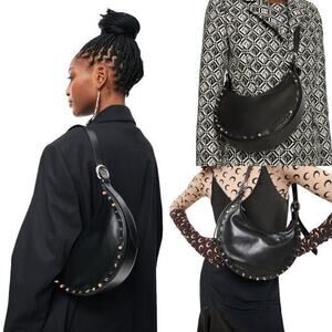 MARINE SERRE Stud Eclipse Crescent Moon Shoulder bag in black