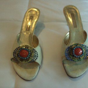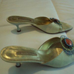 Fabulous shoe classic teal and green, custom design, size 8 excellent condition, never worn outside