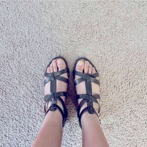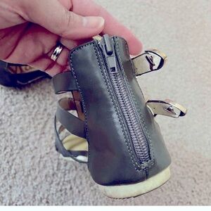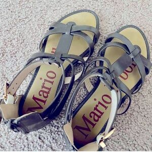 Womens Gladiator Sandals with a touch of glamour, with back zipper closure, with gold metal accent. #glamour #sandals #gladiator , preloved,barely worn, size 8. Brand- MARIO D'boro. Color- is taupe