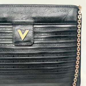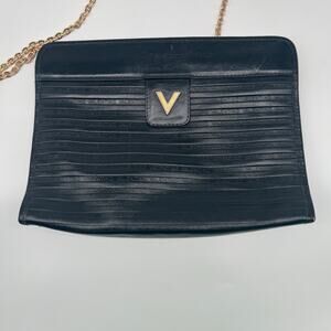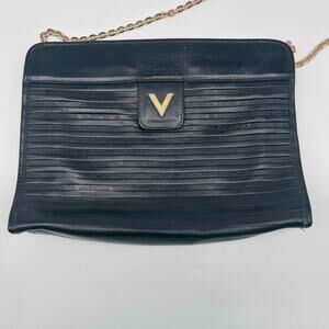 MARIO VALENTINO Leather Clutch or Crossbody Bag, Black, AUTHENTIC LUXURY